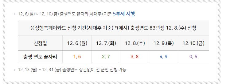 2021. 12. 6.(월) ~ 2021. 12. 31.(금) *신청 후 지급까지 2일 정도 소요