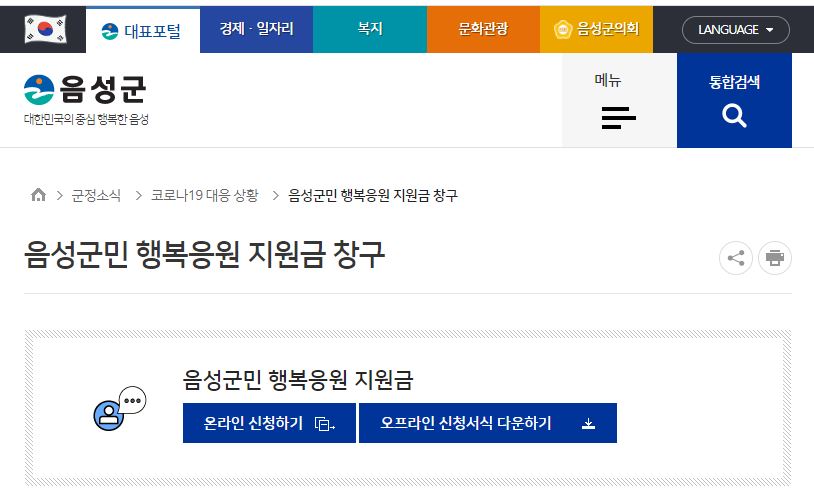 온라인은 음성군 공식 홈페이지를 통해 신청이 가능합니다.
